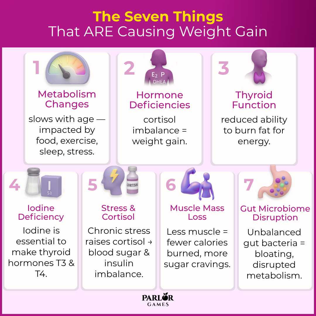 Now, this blog post is heavy on biochem, so buckle up, because we can appreciate that many ladies have legitimate concerns regarding weight gain that can’t be fixed with the oft’ repeated ‘calories in = calories out’ trope.
