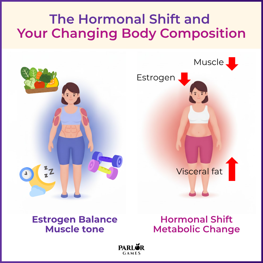 Menopause commonly shifts body composition toward more abdominal fat and less muscle — changes that increase cardiometabolic risk — and the best current strategy is resistance training, good sleep and nutrition, daily movement, plus individualized clinical options (including menopausal hormone therapy) when appropriate.
